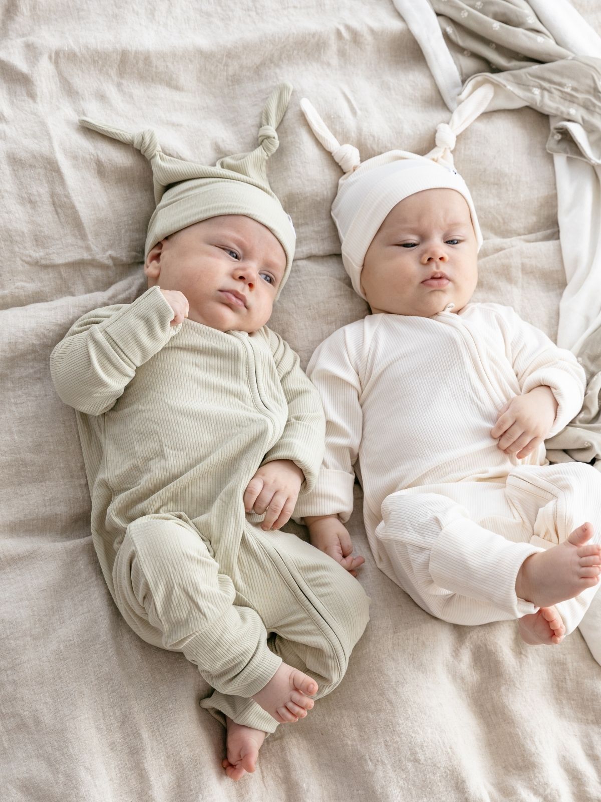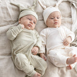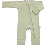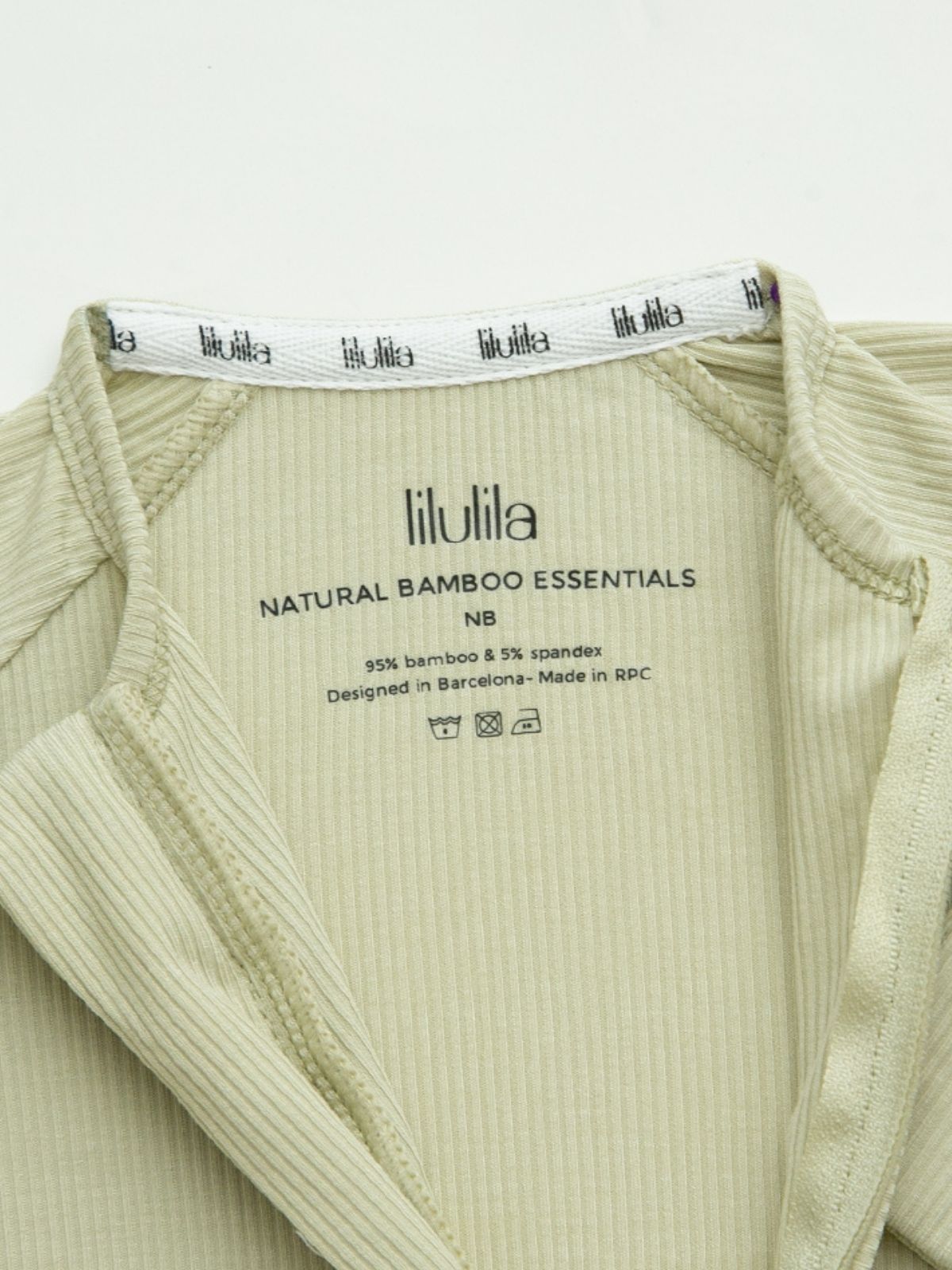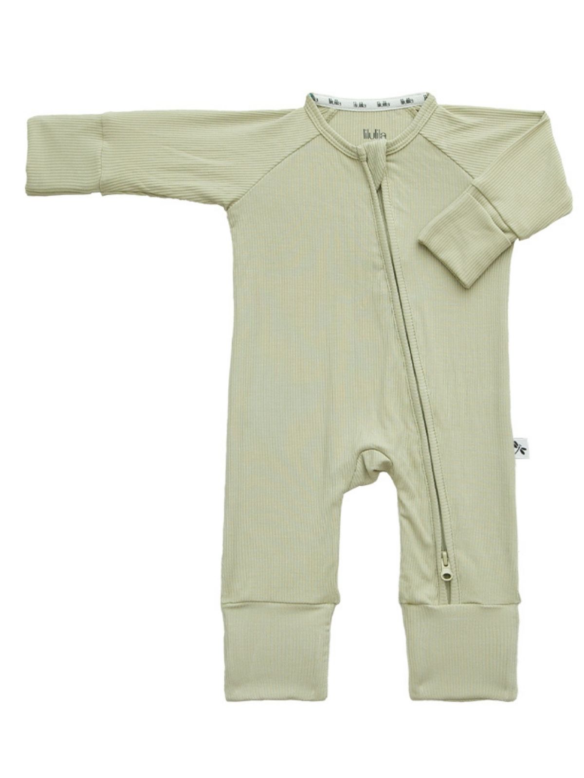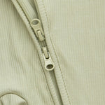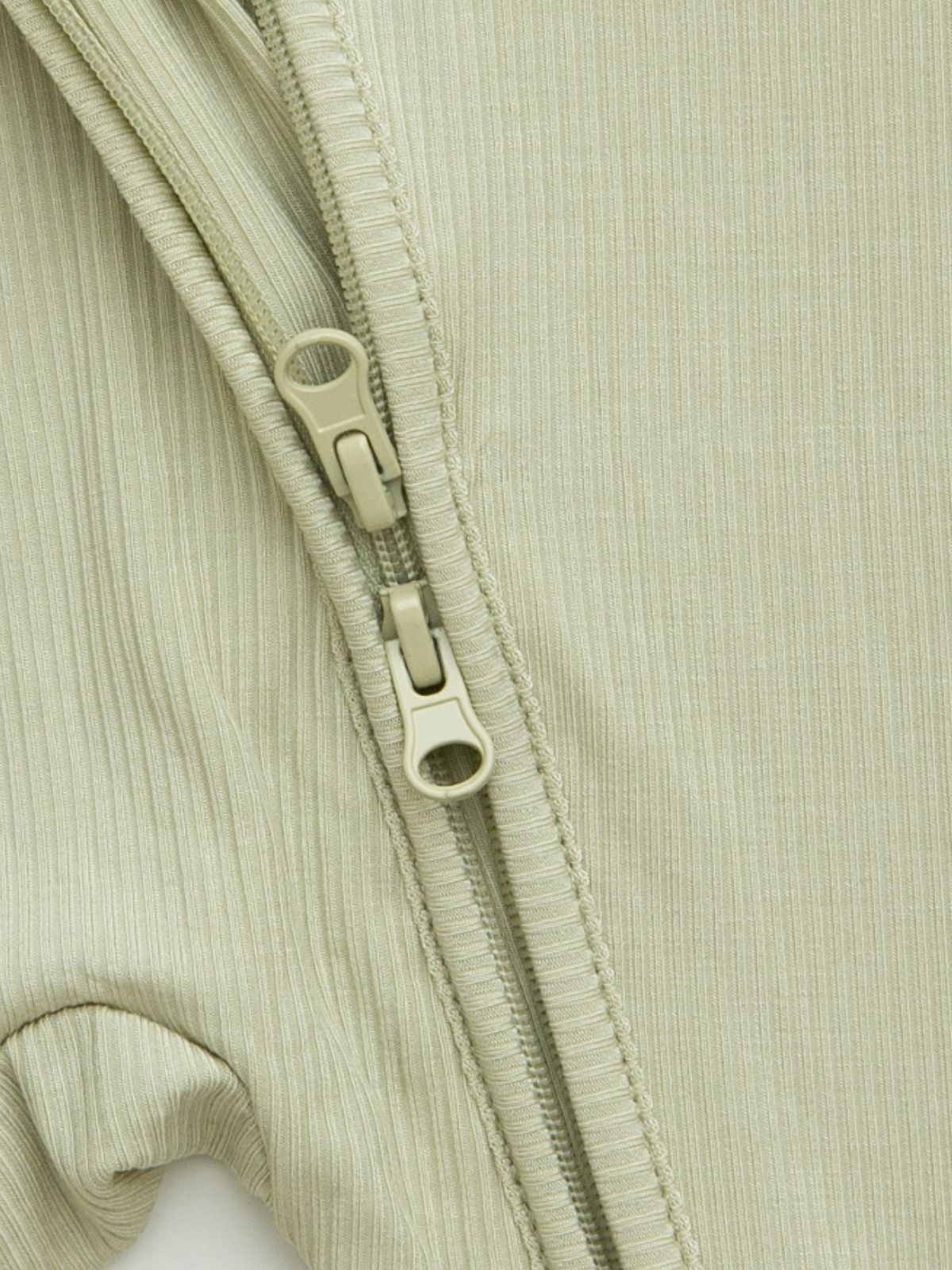 Mameluco práctico acanalado color verde, hecho de fibra de bambú súper suave. Con cierre de doble sentido para cambios de pañal sin problemas. ¡Libertad y comodidad para tu bebé en un solo zippy romper!