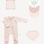 Este paquete incluye mameluco, gorrito y babero que combinan, perfectos para tu bebé. Confeccionados en suave tela de bambú, ofrecen máxima comodidad y transpirabilidad para la delicada piel del pequeño. El conjunto a juego facilita combinar outfits adorables sin complicaciones. Ideal como regalo de baby shower o para estrenar con estilo.