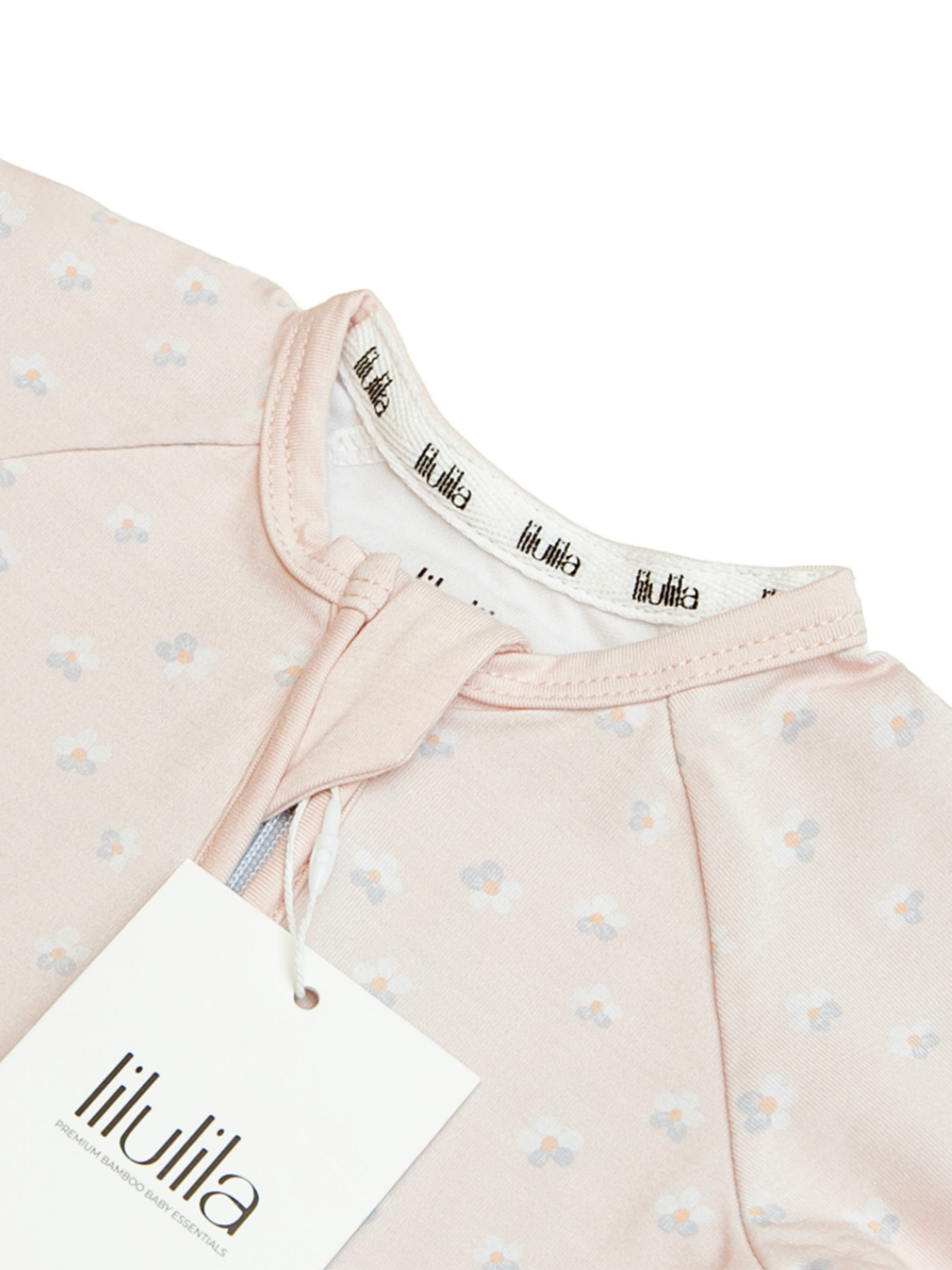 Mameluco práctico con estampado Coral Flower, hecho de fibra de bambú súper suave. Con cierre de doble sentido para cambios de pañal sin problemas. ¡Libertad y comodidad para tu bebé en un solo zippy romper!