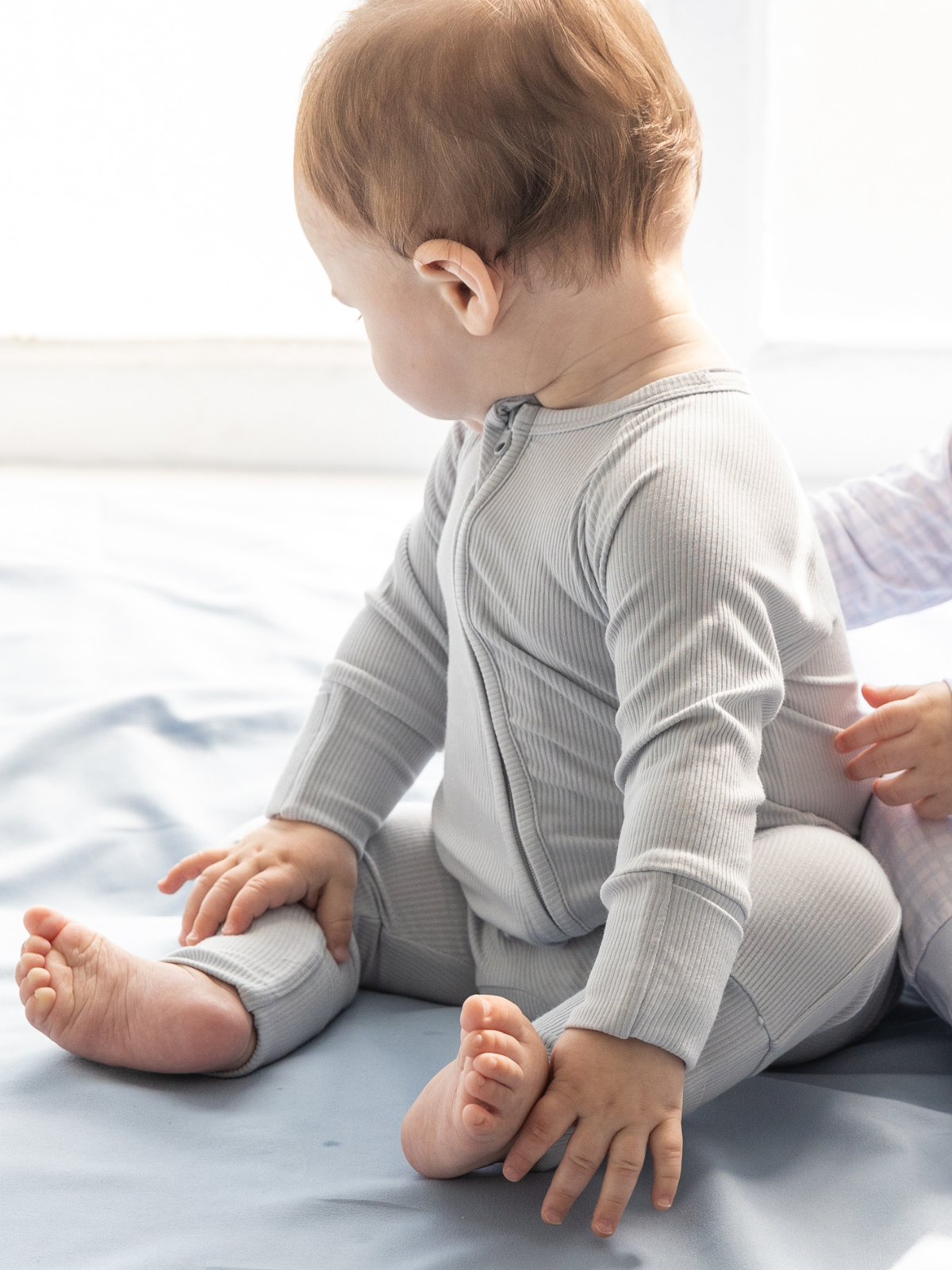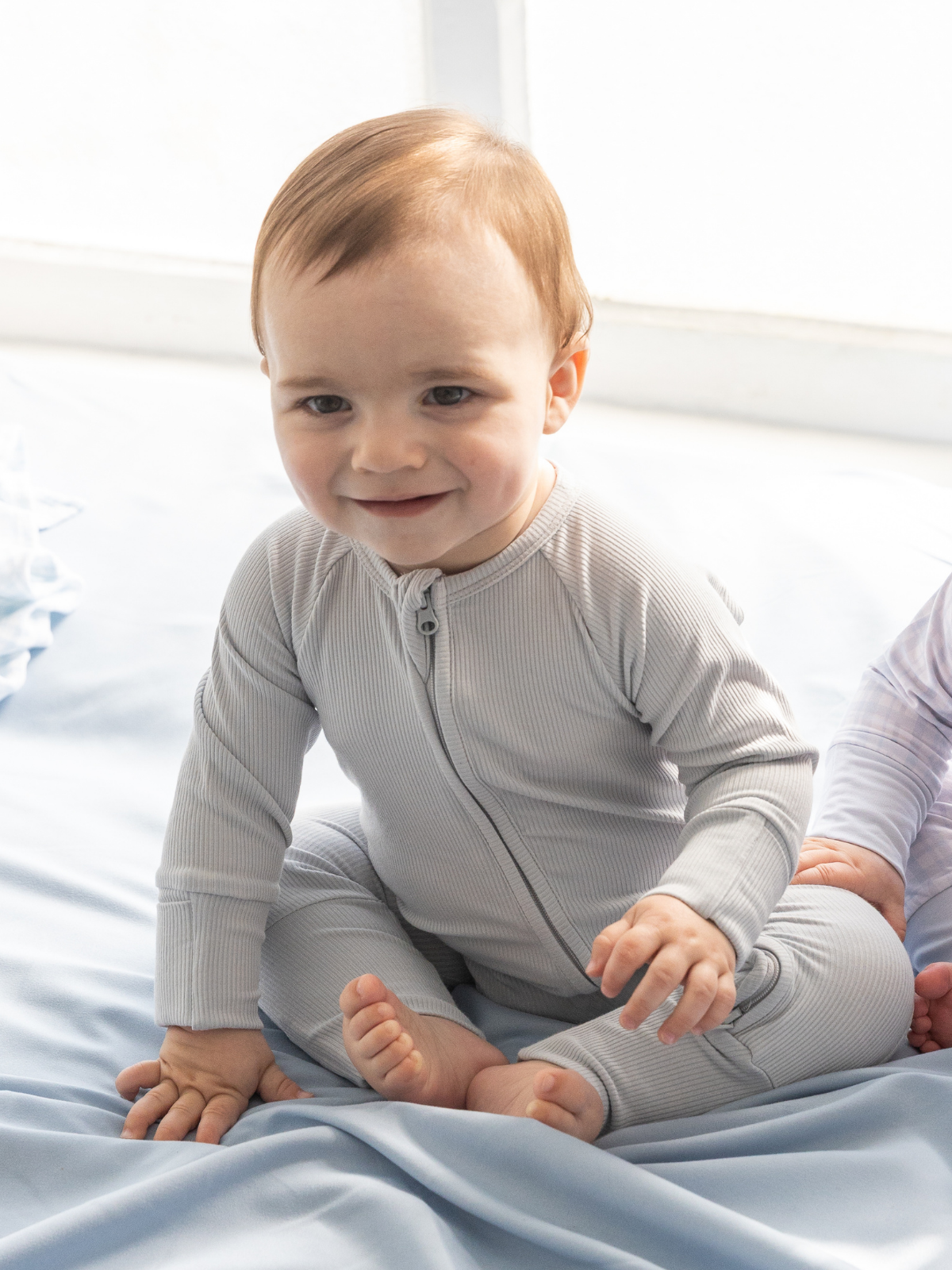 Mameluco práctico color Mint, hecho de fibra de bambú súper suave. Con cierre de doble sentido para cambios de pañal sin problemas. ¡Libertad y comodidad para tu bebé en un solo zippy romper!
