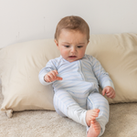 Mameluco práctico con estampado Ride Stripes, hecho de fibra de bambú súper suave. Con cierre de doble sentido para cambios de pañal sin problemas. ¡Libertad y comodidad para tu bebé en un solo zippy romper!