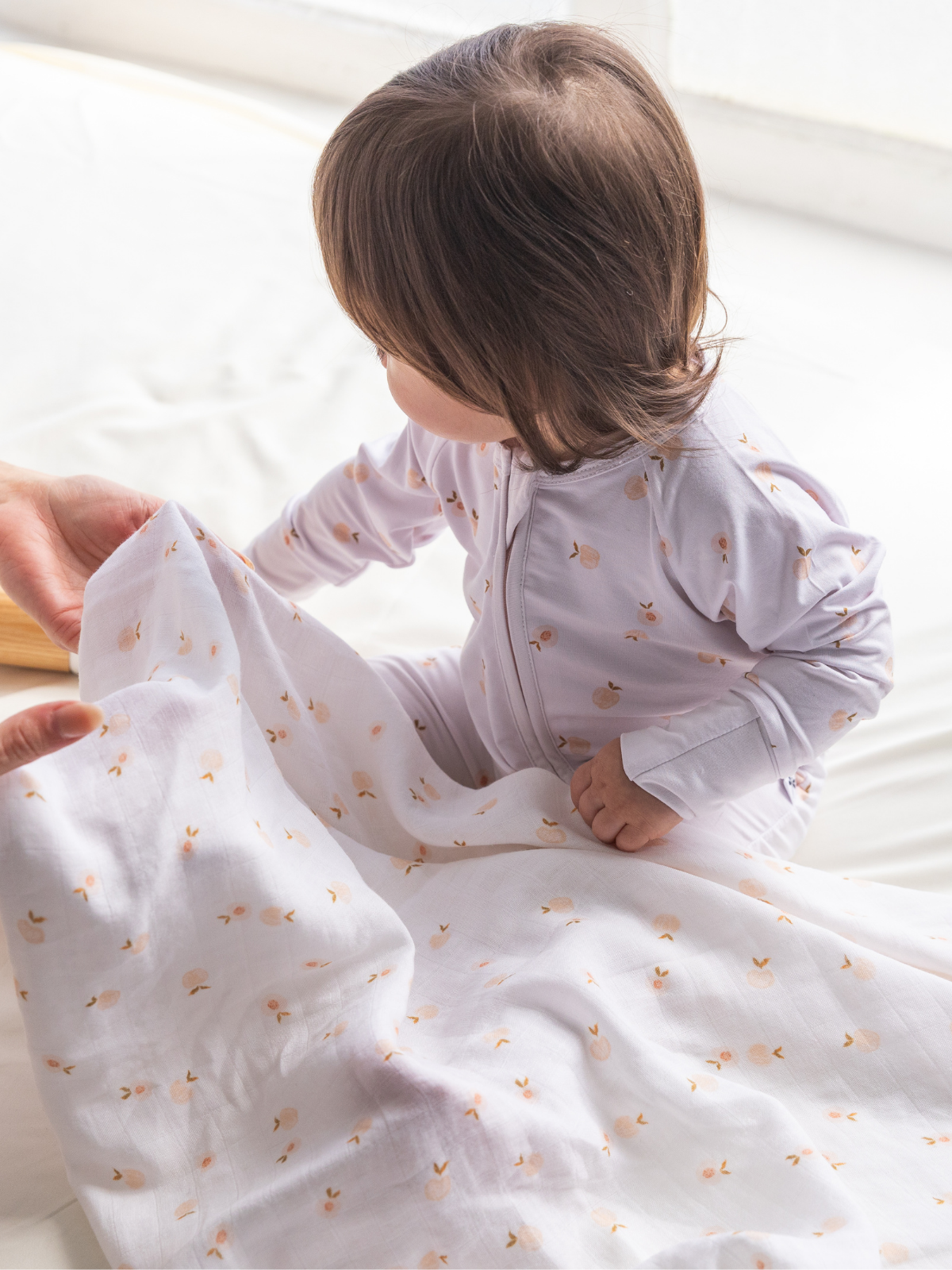 Envuelve a tu bebé en suavidad con nuestra muselina Peaches Bamboo. Confeccionada con lujoso punto de bambú, esta muselina es suave con la delicada piel de tu pequeño. El material de alta calidad garantiza un confort duradero, mientras que el bonito estampado de duraznos añade un toque de encanto. Perfecta para combinar con el resto de nuestra colección.