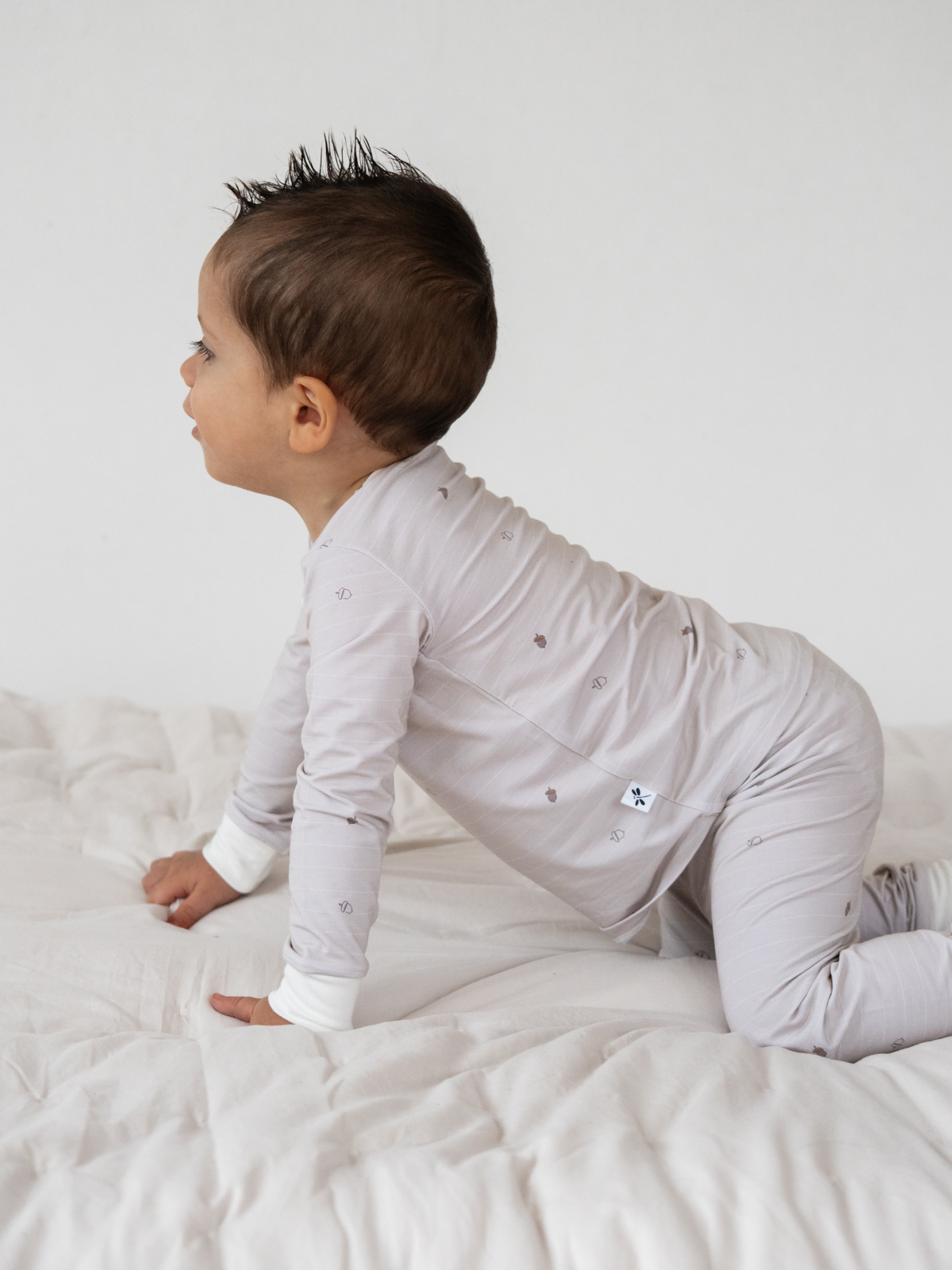 Hecho con tejido de primera calidad, el pijama de dos piezas Acrons Bamboo ofrece una sensación suave y cómoda para el mejor descanso. ¡Será su pijama favorito para dormir! Además, puedes combinarlo con los mamelucos de nuestra colección para que los hermanos luzcan a conjunto.