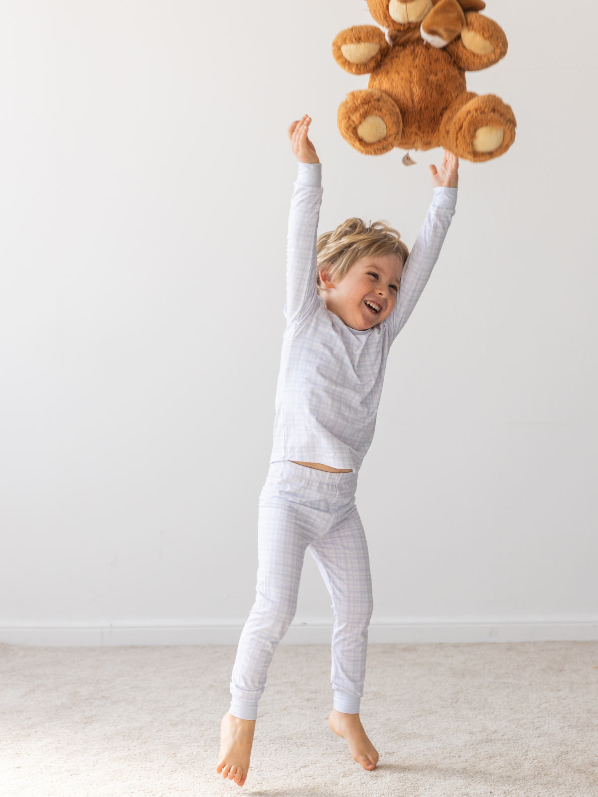 Hecho con tejido de primera calidad, el pijama de dos piezas Blue Vichy Bamboo ofrece una sensación suave y cómoda para el mejor descanso. ¡Será su pijama favorito para dormir! Además, puedes combinarlo con los mamelucos de nuestra colección para que los hermanos luzcan a conjunto.