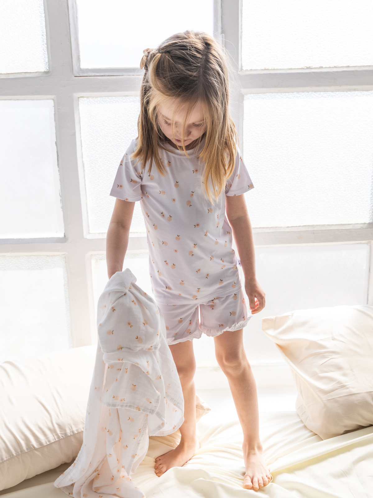 Hecho con tejido de primera calidad, el pijama corto de dos piezas Peaches Bamboo ofrece una sensación suave y cómoda para el mejor descanso. ¡Será su pijama favorito para dormir! Además, puedes combinarlo con los mamelucos de nuestra colección para que los hermanos luzcan a conjunto.