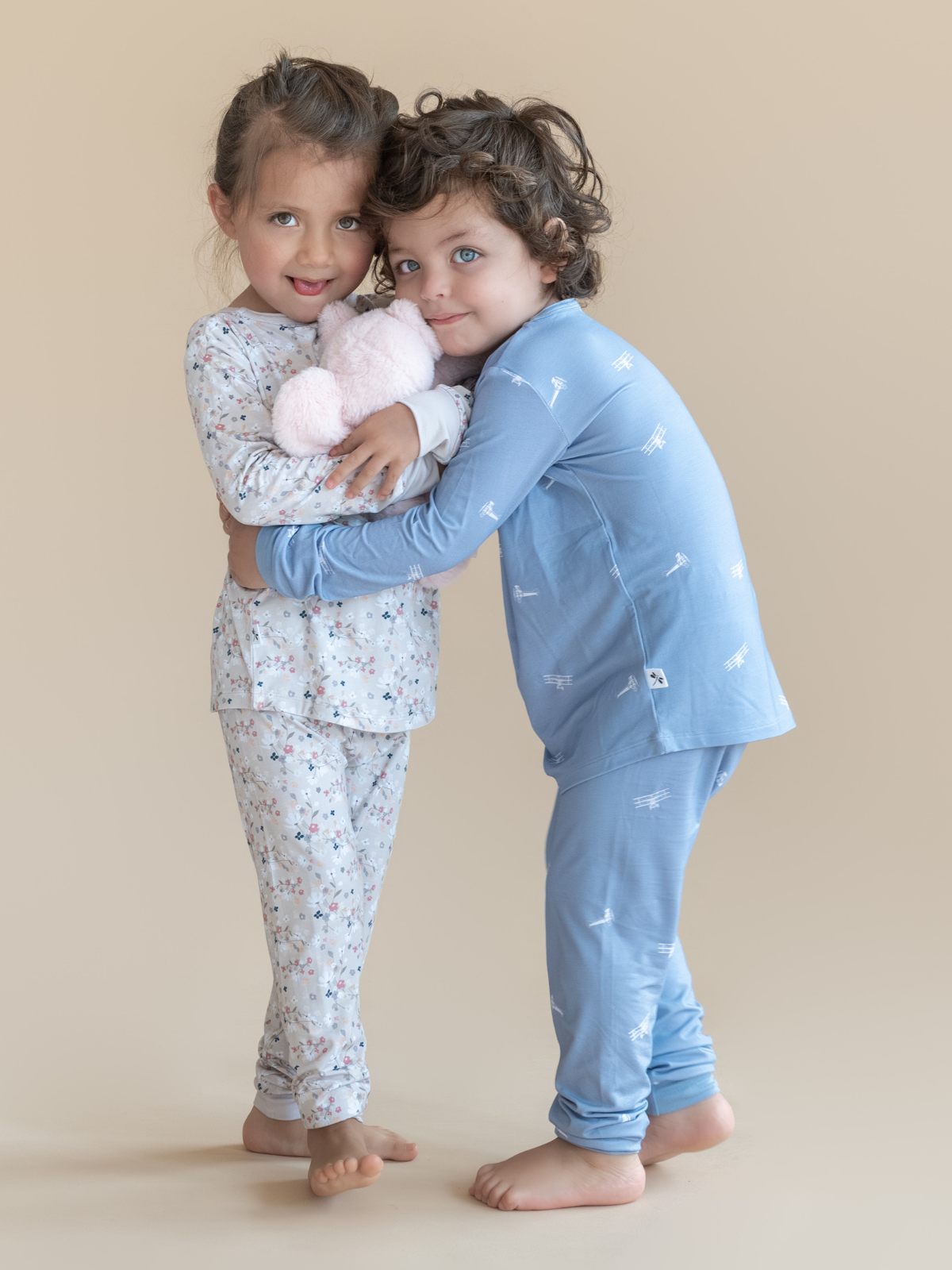 Hecho con tejido de primera calidad, el pijama de dos piezas Bouquet Bamboo ofrece una sensación suave y cómoda para el mejor descanso. ¡Será su pijama favorito para dormir! Además, puedes combinarlo con los mamelucos de nuestra colección para que los hermanos luzcan a conjunto.